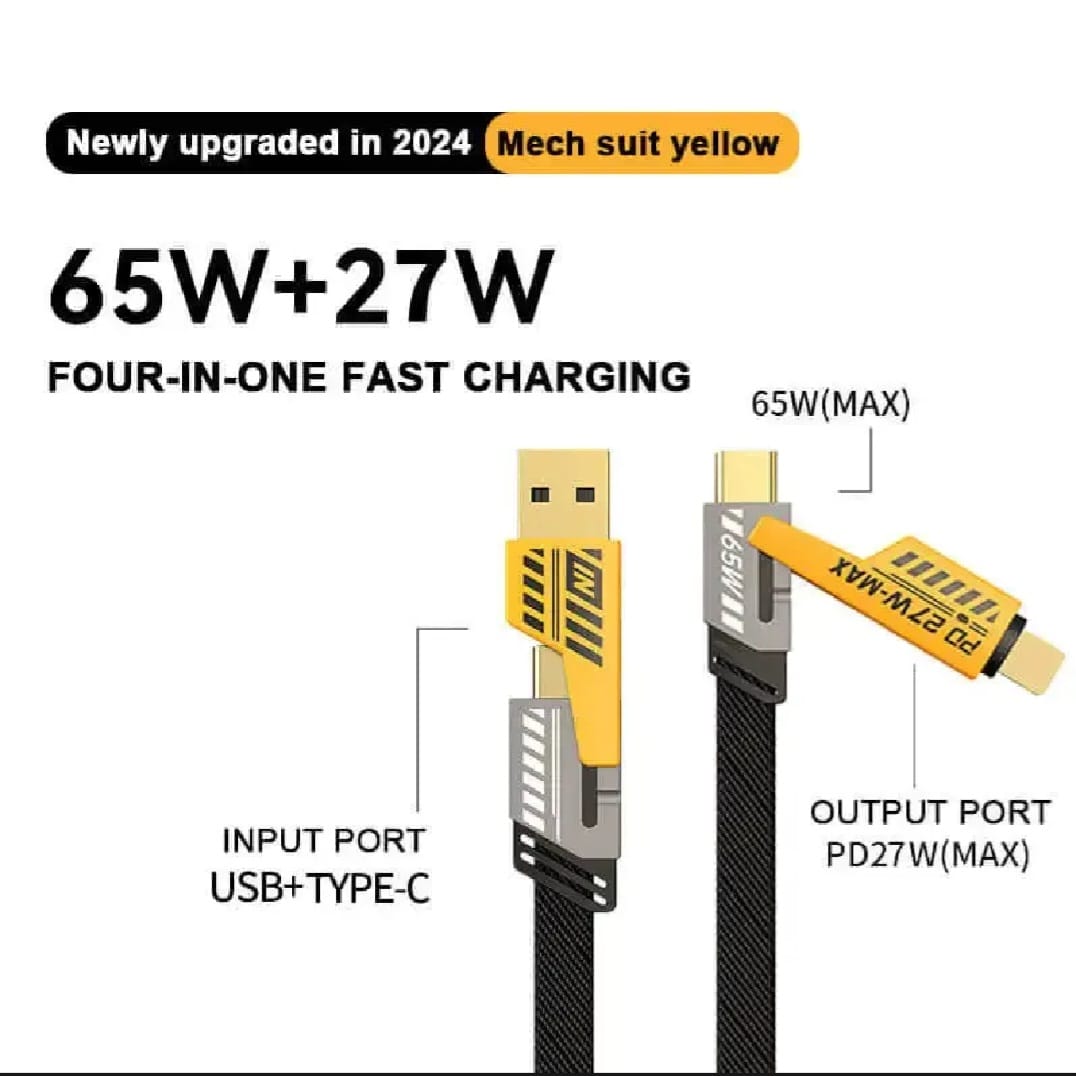 Upgrade your charging experience with Mech 65W Data Cable – the ultimate 4-in-1 charging solution.